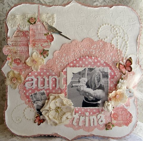 3” strip of lace to the top left corner and ‘hung’ a cage from it – using 3D